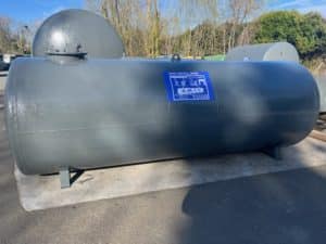 Cuve d’occasion 6 000 L Simple paroi (peut être aussi bien utilisé en aérien que enterré) Intérieur nettoyée, dégazée Extérieur repeinte 1 piquage bas DN