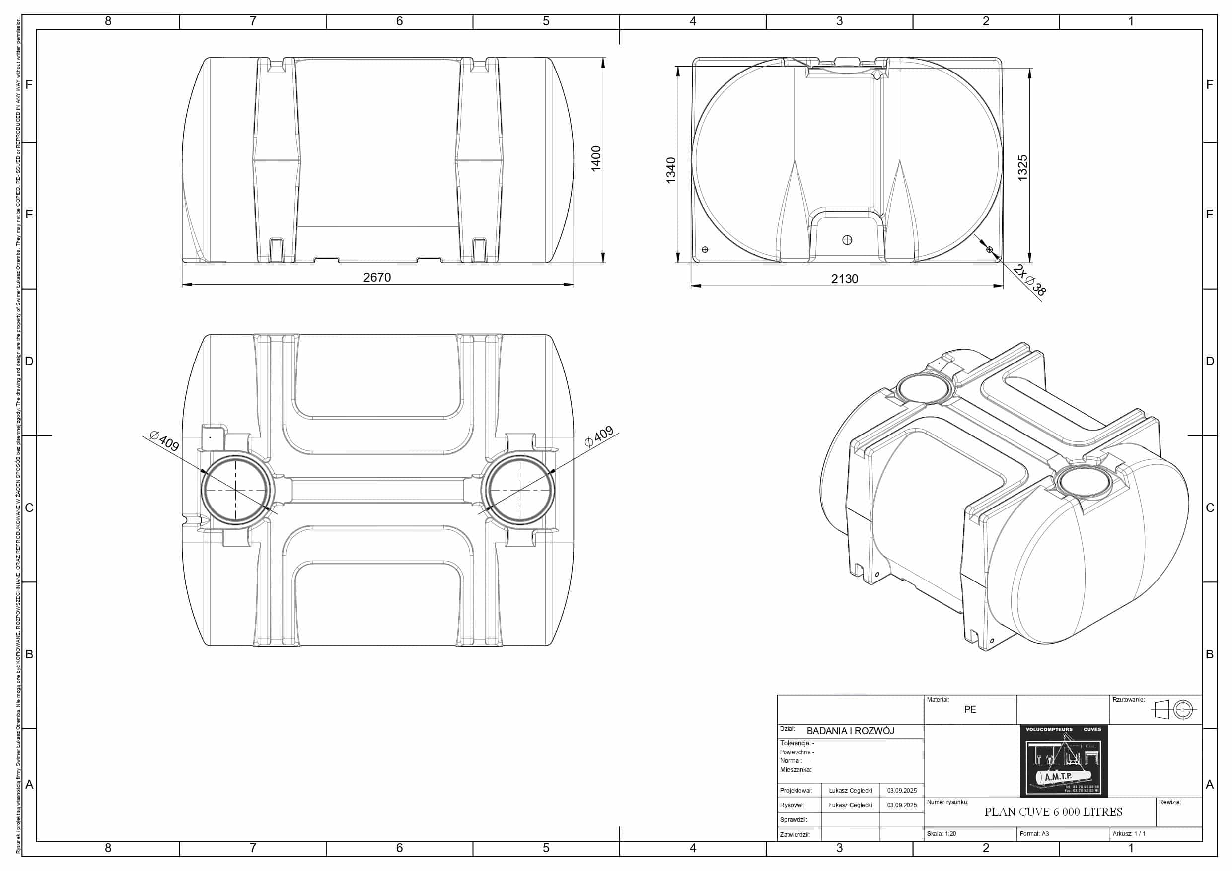 Cuve mobile 6 000 litres avec support fond plat, construction robuste en polyéthylène haute densité